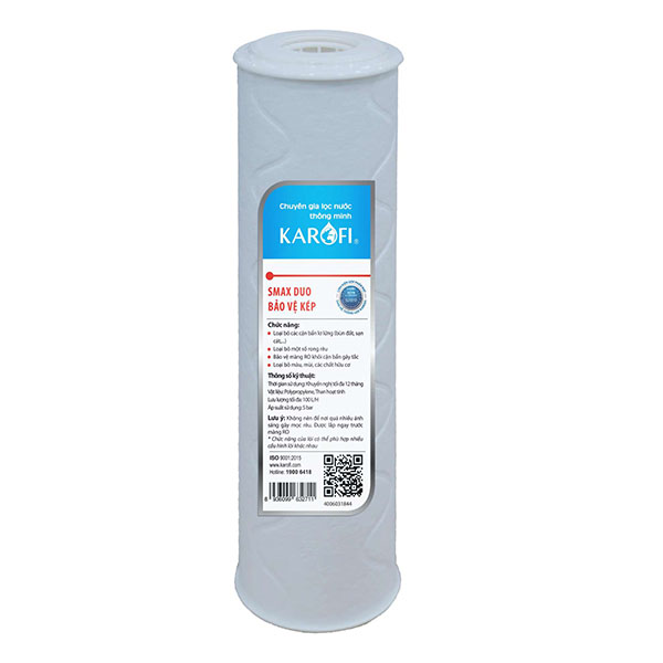 Máy lọc nước Karofi có khả năng xử lý nước vượt trội đều là nhờ vào hệ thống các lõi lọc có chất lượng cao của Karofi. Trong đó, lõi số 2 smax duo 2 bảo vệ kép là một trong những lõi lọc chủ đạo và cũng có thời gian thay là nhanh nhất.
