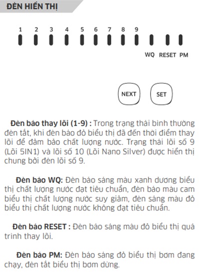 - Thuận tiện theo dõi tình trạng thay lõi với mạch cảnh báo thông minh